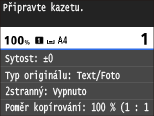 Pokud zařízení přijímá fax nebo je nastaven automatický výstup hlášení, pak se přijaté faxy a hlášení místo vytištění uloží do paměti zařízení, neboť by tištěný výstup mohl být málo výrazný. Pokud chcete pokračovat v tisku, i když v tonerových kazetách dochází toner, nastavte možnost <Pokračovat v tisku, pokud je málo inkoustu v kazetě> na <Zapnuto>. Pokračovat v tisku, pokud je málo inkoustu v kazetě