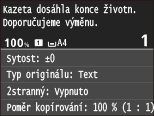 Zobrazené množství zbývajícího toneru v kazetě lze brát pouze orientačně, protože skutečné množství může být jiné.