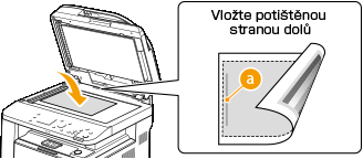 Umístěte vytištěný seřizovací list na kopírovací desku potištěnou stranou dolů.