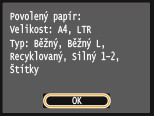 Zkontrolujte, že je v zařízení vložen papír velikosti a typu odpovídajícího údajům na obrazovce, a klepněte na tlačítko <OK>.