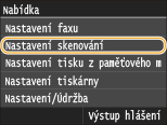 Všechna nastavení týkající se skenování jsou uvedena s krátkým popisem. Výchozí nastavení jsou označena křížkem (