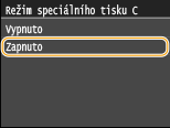 Pokud se problém nevyřeší ani po nastavení této položky, nastavte <Režim speciálního tisku D> na <Zapnuto>. Režim speciálního tisku D