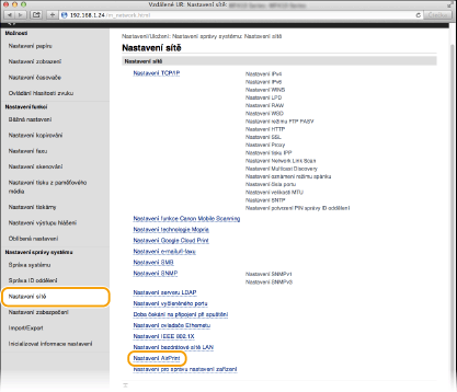 Chcete-li nastavení služby AirPrint změnit, přihlaste se v režimu správce systému.