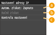Zkontrolujte, že je možnost <Automatická adresa IP> nastavena na hodnotu <Zapnuto>.