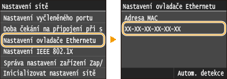 Pokud zařízení připojíte k přepínači nebo mostu, může dojít k chybě připojení, přestože je IP adresa nakonfigurována správně. Tento problém lze vyřešit nastavením určitého intervalu před zahájením komunikace zařízení. Nastavení čekací doby před připojením k síti