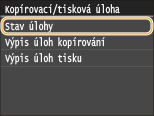 ![]() <Stav kopírovací/tiskové úlohy>Zobrazí seznam dokumentů, které se zpracovávají, kopírují nebo čekají na zpracování.