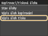 Pokud je pro možnost<Zobrazit výpis úloh> vybráno nastavení <Vypnuto>, protokoly tisku nelze kontrolovat. Zobrazit výpis úloh