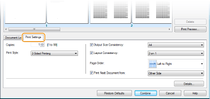 Pomocí nástroje Canon PageComposer lze více dokumentů spojit do jedné tiskové úlohy a danou úlohu vytisknout se zadanými nastaveními tisku. Díky této funkci můžete například zkombinovat dokumenty vytvořené v různých aplikacích a všechny stránky vytisknout na stejnou velikost papíru.