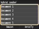 Je-li v paměti uložen zabezpečený dokument od dvou či více uživatelů, před zobrazením obrazovky <Vybrat soubor> se zobrazí obrazovka <Vybrat uživatele>. Vyberte požadované uživatelské jméno.