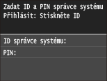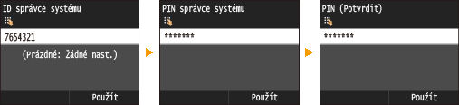 ![]() V zařízení MF419x / MF418x je ve výchozím nastavení uloženo ID správce systému a kód PIN „7654321“. Z bezpečnostních důvodů doporučujeme toto nastavení změnit.