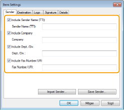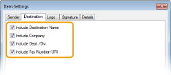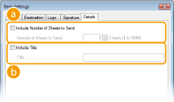 [Include Number of Sheets to Send] (Küldendő lapok számának megjelenítése) Jelölje be ezt a jelölőnégyzetet, ha a fedőlapon meg szeretné jeleníteni a küldeni kívánt lapok számát, majd adja meg a lapok számát a [Number of Sheets to Send] (Küldendő lapok száma) mezőben. A készülék nem számolja meg automatikusan a küldendő lapokat. A fedőlapon az itt megadott érték jelenik meg.