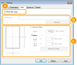 Adja meg a beállításokat. Az alábbi példa azt az esetet mutatja, amikor a képernyő az [Logo] (Embléma) lap van kiválasztva.