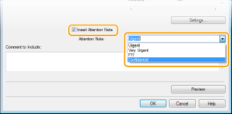 Olyan fontos megjegyzések közül választhat, mint például „Sürgős” és „Bizalmas”. A [Attention Note] mezőbe közvetlenül is írhat, ha nem a listából szeretne megjegyzést választani.