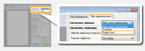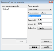 Jeśli wybrana zostanie opcja [Dodaj/Usuń], można dodać nowe ustawienia rozmiaru obrazu wyjściowego lub usunąć dodane rozmiary.