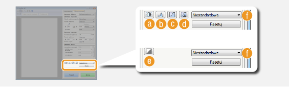 Gdy dokument skanowany jest za pomocą oprogramowania OCR lub innej aplikacji, okno programu ScanGear MF może nie zostać wyświetlone. W takim przypadku dokument jest skanowany z zastosowaniem ustawień skonfigurowanych w aplikacji. Jeśli jednak aplikacja nie udostępnia następujących ustawień, można włączyć je tutaj, aby zostały zastosowane podczas skanowania.