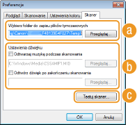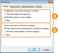 Kliknięcie przycisku [Preferencje] umożliwia konfigurację różnych ustawień w tym tych dotyczących operacji skanowania.