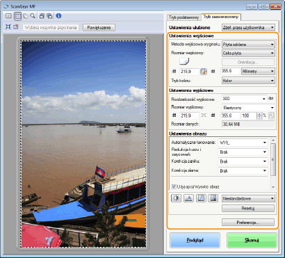 Po uruchomieniu programu ScanGear MF wyświetlany jest podgląd.