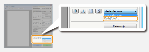 Zostanie wyświetlony ekran [Dodaj/usuń ustawienia krzywej tonowej] lub [Dodaj/usuń ustawienia progu].