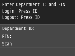 Коли відобразиться екран для входу в систему, виконайте наведені нижче дії, щоб ввести ідентифікатор відділу та PIN-код.