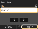 За допомогою цифрових клавіш введіть ім’я користувача та торкніться кнопки <Apply>.