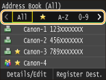 Часто використовуваних адресатів для сканування та факсу можна зареєструвати в адресній книзі, щоб за потреби швидко їх знаходити. Адресатів можна шукати за алфавітом, за списками адресної книги або за тризначним номером (номером кодованого набору). Крім того, за допомогою наведених нижче функцій зазначати адресатів можна ще швидше.