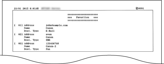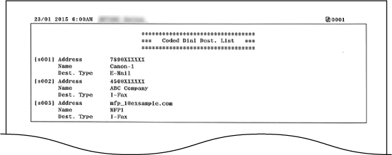 За допомогою друку списку адресної книги можна перевірити такі списки адресатів, зареєстрованих в адресній книзі: <Coded Dial>, <Favorites> і <Group Dial>.