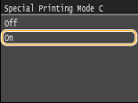Якщо не вдається вирішити проблему, незважаючи на встановлення цього елемента, установіть для параметра <Special Printing Mode D> значення <On>. Special Printing Mode D