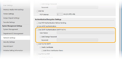 Якщо ви налаштували SMTP-автентифікацію (SMTP AUTH), ідентифікація користувача за його ім’ям і паролем виконується під час надсилання електронного листа або інтернет-факсу.