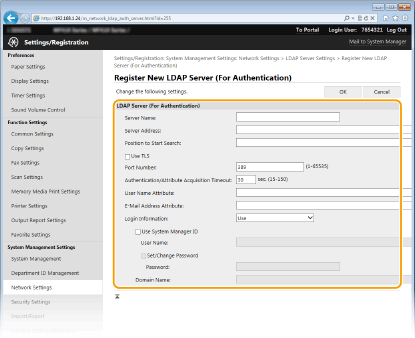 Виберіть елемент [Register New Server] для [LDAP Server (For Search)] або [LDAP Server (For Authentication)].