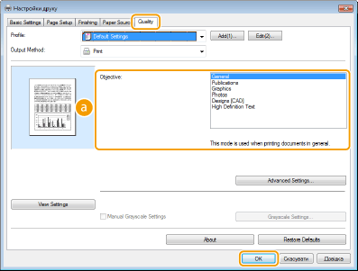 Виберіть варіант відповідно до типу документа або мети друку. Наприклад, виберіть [General] (Загальний) для типового використання або [Photos] (Фото), якщо слід надрукувати фото з оптимальною якістю друку.