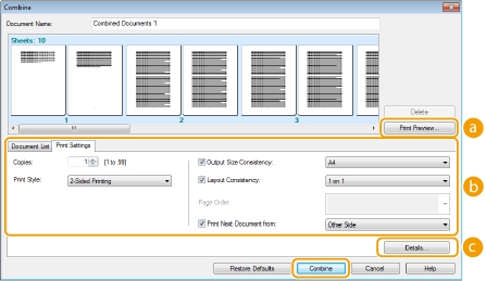 Зі списку [Document Name] (Назва документа) виберіть документи для об’єднання і натисніть клавішу