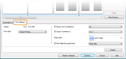 За допомогою функції Canon PageComposer можна об’єднувати кілька документів в одне завдання друку і виконати його з певними параметрами друку. Наприклад, ця функція дає змогу об’єднувати документи, створені в різних програмах, і друкувати всі сторінки в одному форматі.