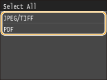 Торкніться елемента <JPEG/TIFF> або <PDF>.