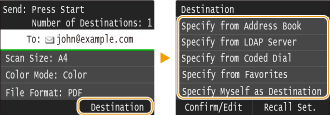 Якщо вказано кілька адресатів, другий і наступні мають бути зареєстровані в адресній книзі або на LDAP-сервері. Для копії або прихованої копії можна вказати лише адресатів, зареєстрованих в адресній книзі. Щоб скористатися адресною книгою або LDAP-сервером, необхідно заздалегідь виконати процедуру реєстрації.