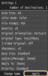 Щоб перейменувати адресата реєстрації, торкніться кнопки <Change Name>. Відомості про введення тексту див. в розділі