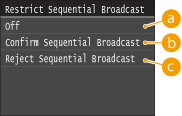Виберіть елемент <Confirm Sequential Broadcast> або <Reject Sequential Broadcast>.