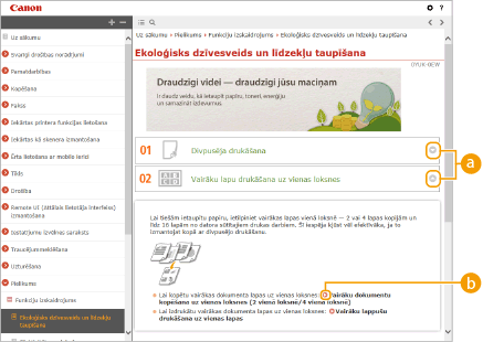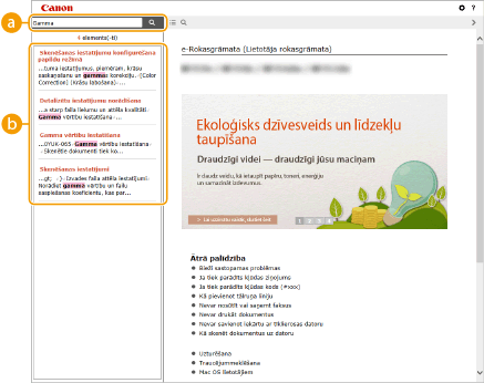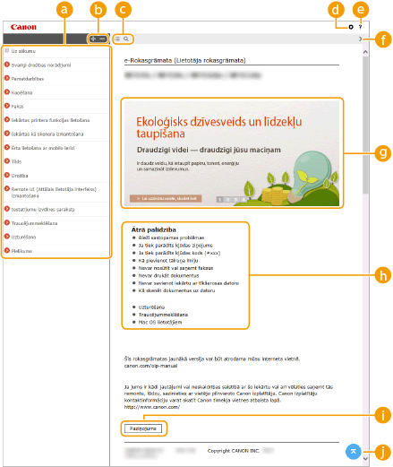 Noklikšķiniet, lai parādītu informāciju par to, kā skatīt e-Rokasgrāmata, kā veikt meklēšanu, kā arī aplūkotu citu informāciju.