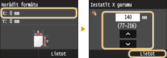 Ievadiet malas <Y> garumu un pieskarieties <Lietot>.