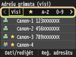 Adrešu grāmatā varat reģistrēt bieži izmantotos faksa/skenēta dokumenta adresātus un nepieciešamības gadījumā tos ērti izvēlēties. Adresātus var meklēt alfabēta secībā adrešu grāmatas sarakstos vai ievadot trīsciparu numurus (kodētā numuru sastādīšana). Adresātus varat arī ātri norādīt, izmantojot tālāk aprakstītās funkcijas.