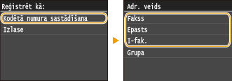 <Faksa iestatījumi>. Tomēr iestatījumi, kas veikti no vienuma <Adrešu grāmata>, ir aktivizēti detalizētajiem adrešu grāmatā reģistrēto adresātu iestatījumiem. |