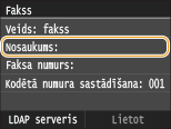 Adresāta laukā ievada LDAP serverī reģistrētā izvēlētā lietotāja lietotājvārdu, faksa numuru vai e-pasta adresi.