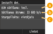 Vienumus <ECM sūtīšana> un <Sūtīšanas ātrums> varat arī norādīt no <Izvēlne>