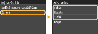 <Faksa iestatījumi>. Tomēr iestatījumi, kas veikti no vienuma <Adrešu grāmata>, ir aktivizēti detalizētajiem adrešu grāmatā reģistrēto adresātu iestatījumiem. |