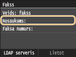 Adresāta laukā ievada LDAP serverī reģistrētā izvēlētā lietotāja lietotājvārdu, faksa numuru vai e-pasta adresi.