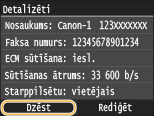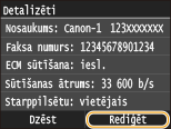Detalizētu iestatījumu veikšana (tikai tad, ja reģistrēti faksam)