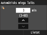 . Varat arī izmantot automātiskā miega laika iestatījumu, lai iekārtā automātiski aktivizētu miega režīmu, ja tā ir dīkstāvē noteiktu laika periodu.
