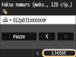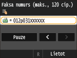 Pieskarieties <Pauze>, lai pēc nepieciešamības faksa numura beigās ievietotu pauzi.