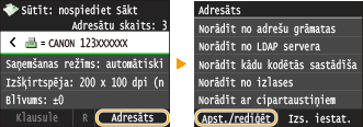 / , lai pārslēgtu norādītos adresātus. Parādiet adresātu, ko vēlaties dzēst, un nospiediet . |