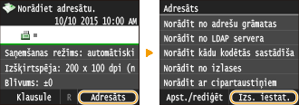 Varat izvēlēties kādu no pēdējiem trīs adresātiem. Ja norādāt iepriekš lietotu adresātu, iekārta izmanto tos pašus faksa iestatījumus, piemēram, blīvumu, kurus lietojāt iepriekšējā reizē, kad šim adresātam sūtījāt dokumentus.