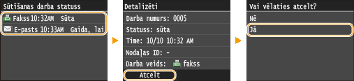 . Faksa dokumentu sūtīšanu varat atcelt arī pēc faksa statusa pārbaudīšanas.